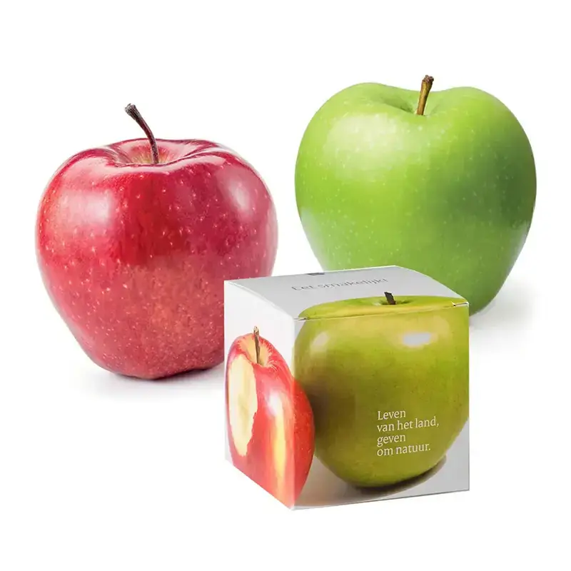 Appel in bedrukt doosje