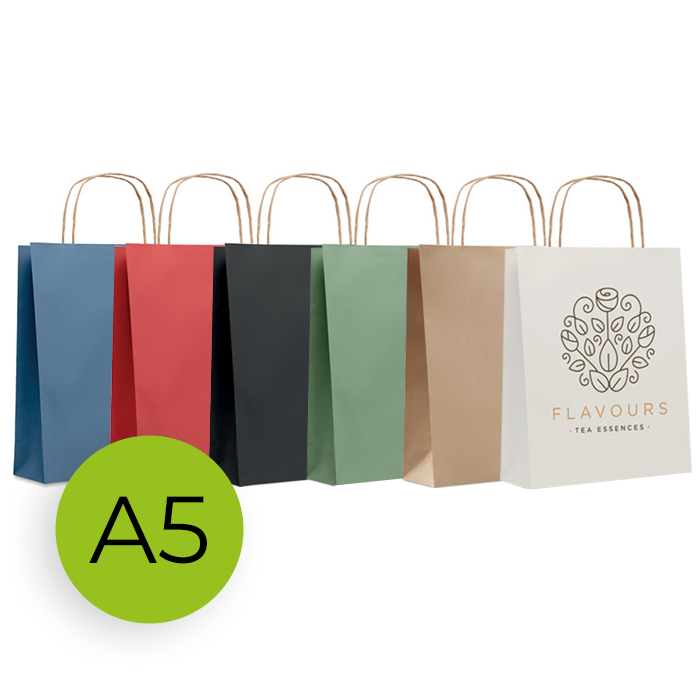 5. Gekleurde papieren tas (S) van gerecycled materiaal