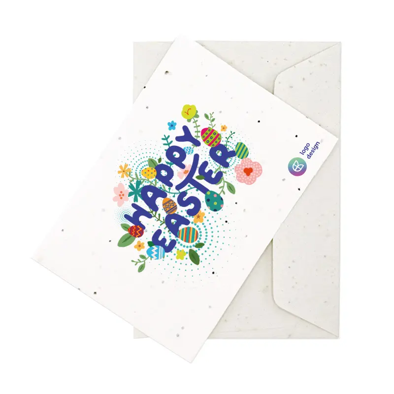 Met een bijzonder kaartje maak je mensen altijd blij. Kies bijvoorbeeld voor een paaskaartje van groeipapier die je met je eigen ontwerp kunt laten bedrukken. Het groeipapier kan in de grond worden gestopt en na een tijdje groeien er prachtige bloemen. Je kunt ook kiezen voor een groeipapierkaart in de vorm van een paasei.