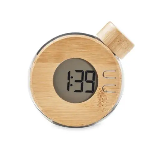 Een bureauklok is altijd handig om snel even te kijken hoe laat het is. Deze digitale bureauklok werkt op waterenergie, waardoor er geen batterijen nodig zijn. Vul de klok eenvoudig met water en het digitale display wordt direct geactiveerd. Een origineel en milieuvriendelijk relatiegeschenk! Dankzij de bamboe details heeft de klok een stijlvolle en strakke uitstraling.