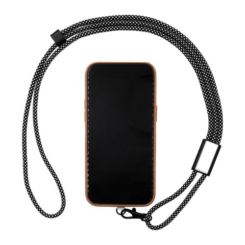 Deze zwarte lanyard is niet zomaar een koord, maar een slimme upgrade voor je telefoonhoes. De lanyard is gemaakt van gerecyclede PET-flessen en helpt daarmee plastic afval te verminderen, terwijl jij je handen vrijhoudt. De verstelbare metalen riemadapter is stevig en geschikt voor bijna alle telefoonhoesjes. Dankzij het slimme ontwerp blijft je oplaadpoort vrij, zodat je nooit zonder stroom zit. Perfect voor onderweg, als giveaway op beurzen of gewoon voor dagelijks gemak!