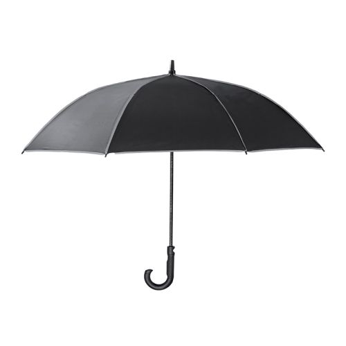 Deze windbestendige paraplu is gemaakt van stevig RPET pongee, afkomstig van gerecyclede PET-flessen. Met z'n elegante zwarte design en reflecterende accenten val je op – zelfs in een donkere bui. De paraplu opent automatisch, heeft een diameter van 120 cm (27") en is voorzien van sterke glasvezelribben en een PP-handvat. Je neemt 'm makkelijk mee in het meegeleverde hoesje met verstelbare band en klittenbandsluiting.