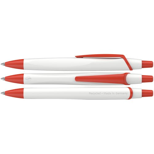 De body van de pen is mat wit, voor de clip en drukmechanisme kun je kiezen uit 10 kleuren. Je logo of tekst kan op de clip of de body worden bedrukt in 1-4 kleuren. Je kunt de pen dus helemaal samenstellen zoals je graag wilt.