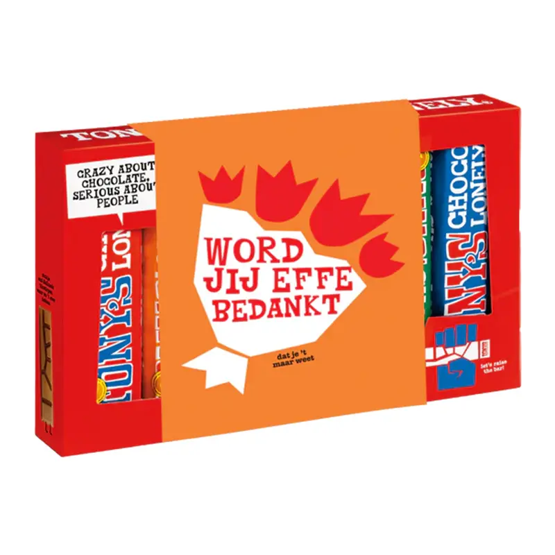 Het assortiment van Tony's Chocolonely bestaat inmiddels uit verschillende producten met tal van verschillende smaken. Zo is er altijd wel iets geschikt als passend relatiegeschenk.