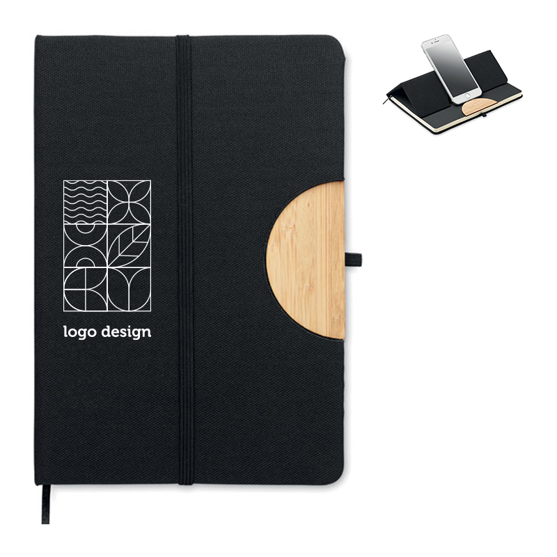 Dit A5 notitieboekje is multifunctioneel. Hij kan namelijk gebruikt worden als notitieboekje (uiteraard) en als telefoonstandaard. Het boekje heeft een kaft gemaakt van gerecycled plastic en bevat 80 gelinieerde bladzijden van gerecycled papier. De kaft kan opgeklapt worden zodat er een telefoon tegenaan kan staan.