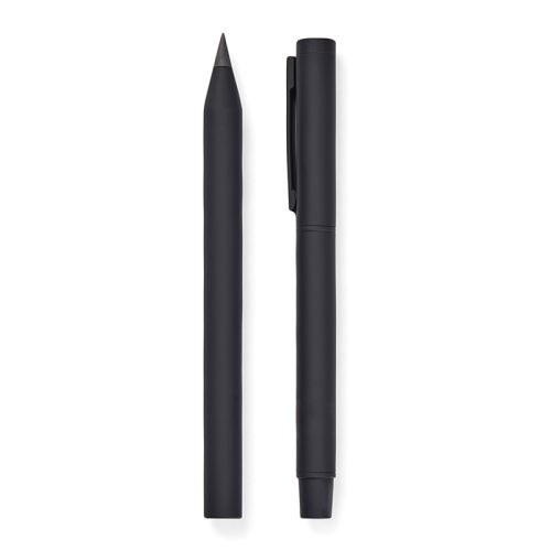 Op zoek naar een handig en duurzaam geschenk? Deze schrijfset is gemaakt van gerecycled RVS. De set bestaat uit een klassieke balpen met blauwe inkt én een eeuwigschrijvende pen. De pennen worden geleverd in een stijlvolle geschenkdoos en zijn verkrijgbaar in vier neutrale kleuren. Dankzij het uitgebalanceerde gewicht schrijf je soepel en stabiel.