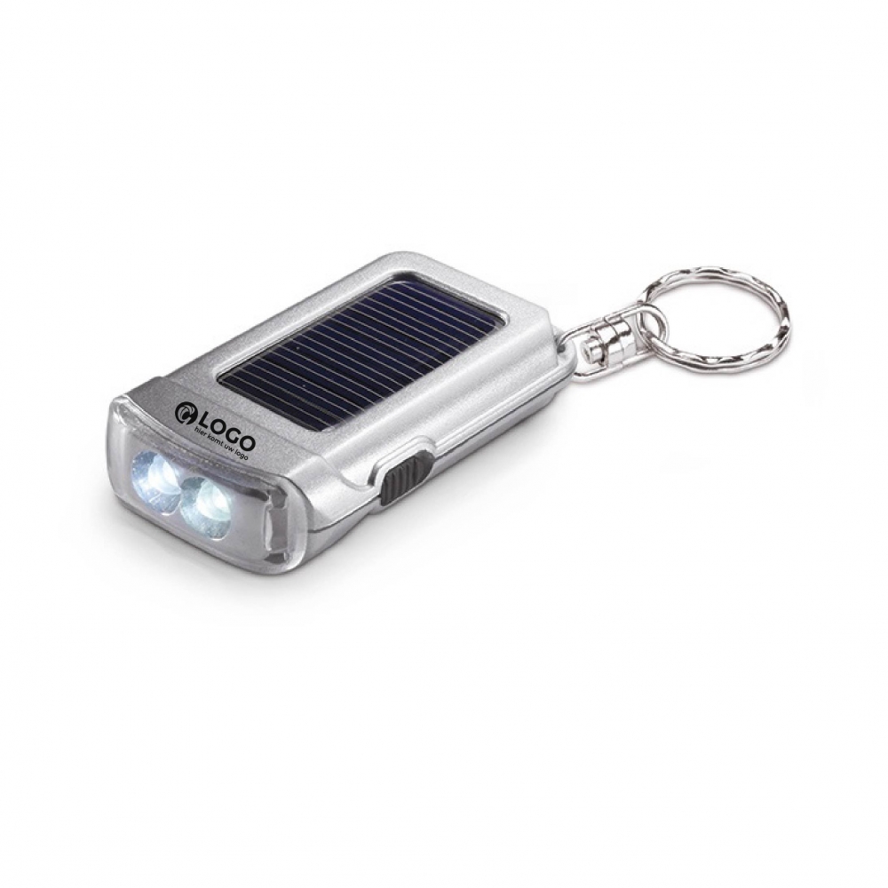 Als je relaties en klanten in het donker zitten.. zorg jij voor licht! Dit door simpelweg deze mooie zilverkleurige sleutelhanger met zaklamp cadeau te geven. In het zaklampje zitten twee mooie, witte LED lampjes die werken op zonne-energie. Het ideale is dat de zaklamp de energie voor meerdere uren kan opslaan, zodat ‘ie in het donker gewoon werkt!
