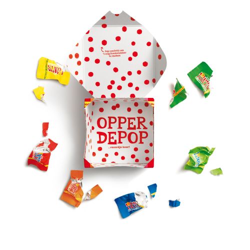 In dit vrolijke kado-doosje zitten 22 Tiny Tony's in maar liefst 10 verschillende smaken. Heerlijke fairtrade chocolade waar je van gaat watertanden. Reken maar dat dit doosje in ieder huis of kantoor binnen no-time leeg is! Wat het nog leuker maakt om weg te geven, is de bedrukte wikkel die eromheen zit. Je kunt hierop je logo of tekst full colour laten bedrukken.