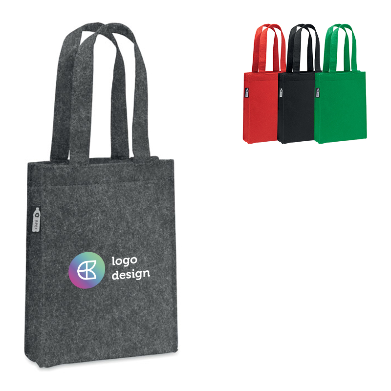 Een geschenktas is een geweldige manier om je geschenk in te presenteren! Heb je een geschenk van een wat kleiner formaat? Dan is deze compacte tas een absolute aanrader. Het materiaal is vilt, afkomstig van gerecyclede PET-flessen. Dan heb je dus twee vliegen in één klap: duurzaamheid en stijl. Dankzij een dikte van 1 mm is de tas stevig en tegelijkertijd licht van gewicht. De tas is voorzien van korte hengsels en een verstevigde bodemplaat.