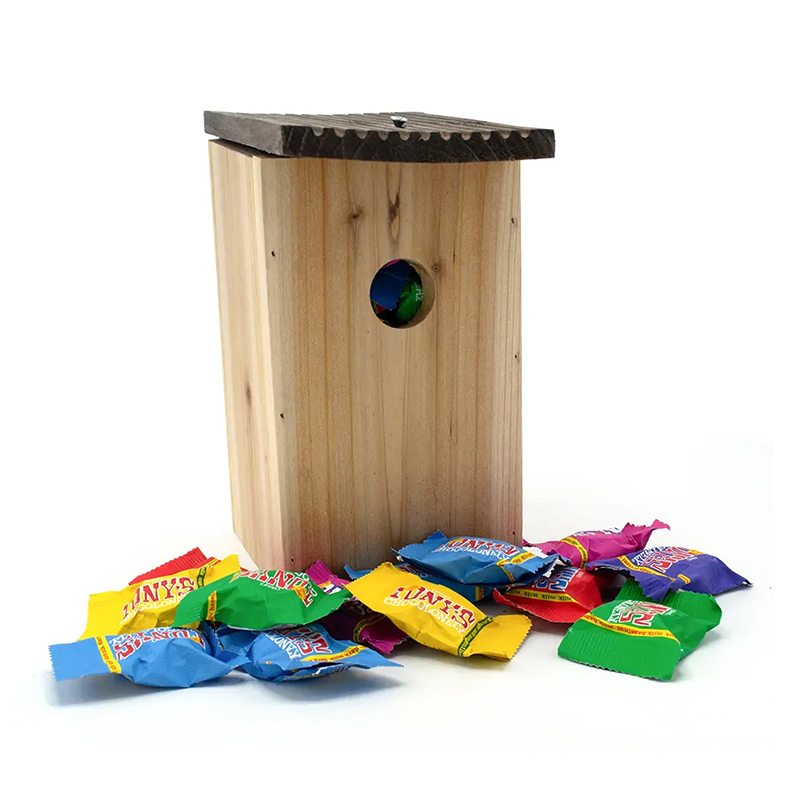 Het vogelhuisje is gevuld met ongeveer 45 overheerlijke Tiny Tony's. Dat maakt het geschenk nóg leuker om te geven en te krijgen. Je kunt vogelhuisje laten graveren met je logo of tekst. Ideaal als promotiemateriaal of persoonlijke weggever!